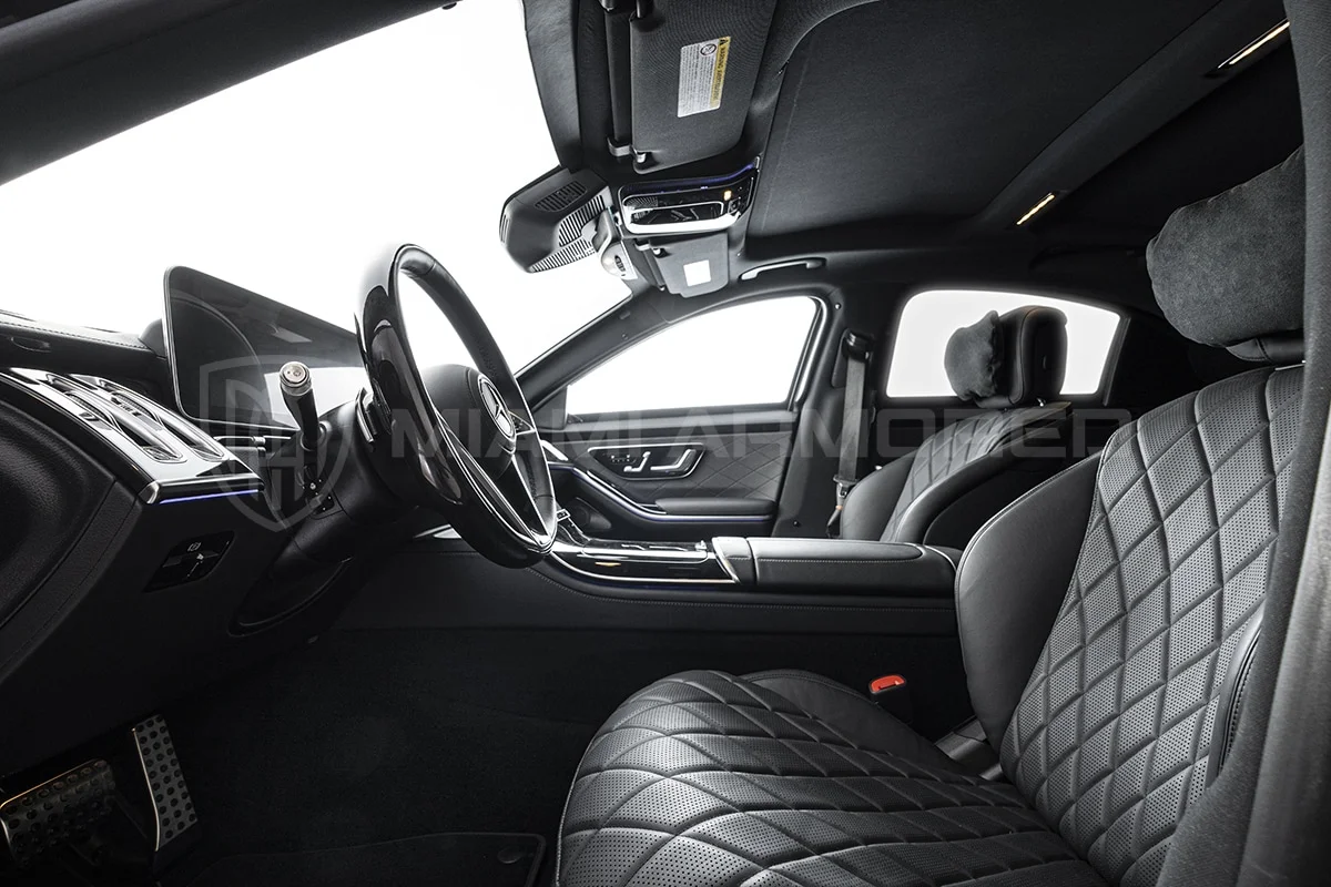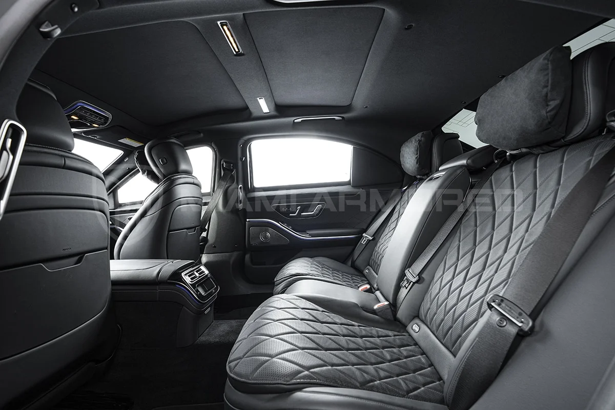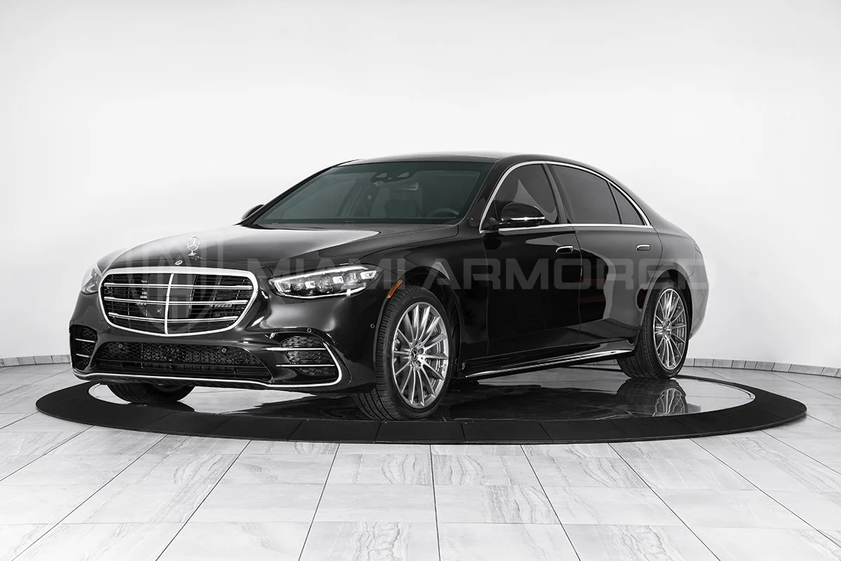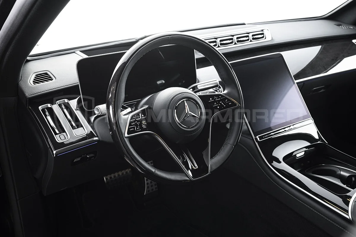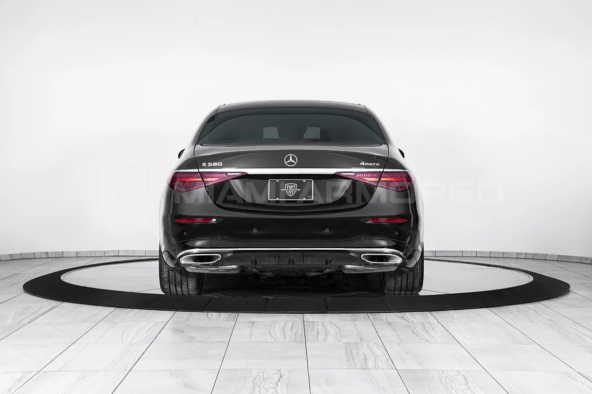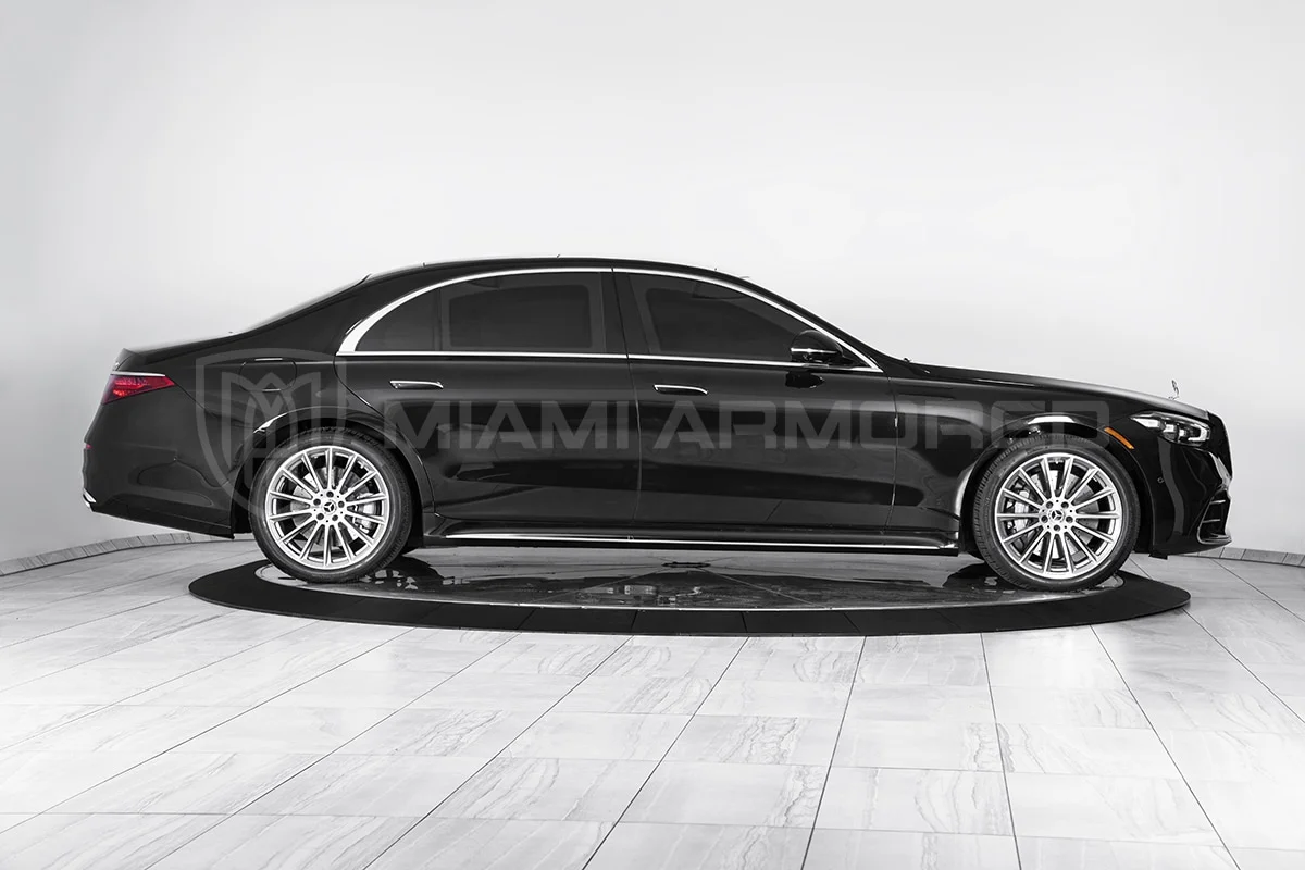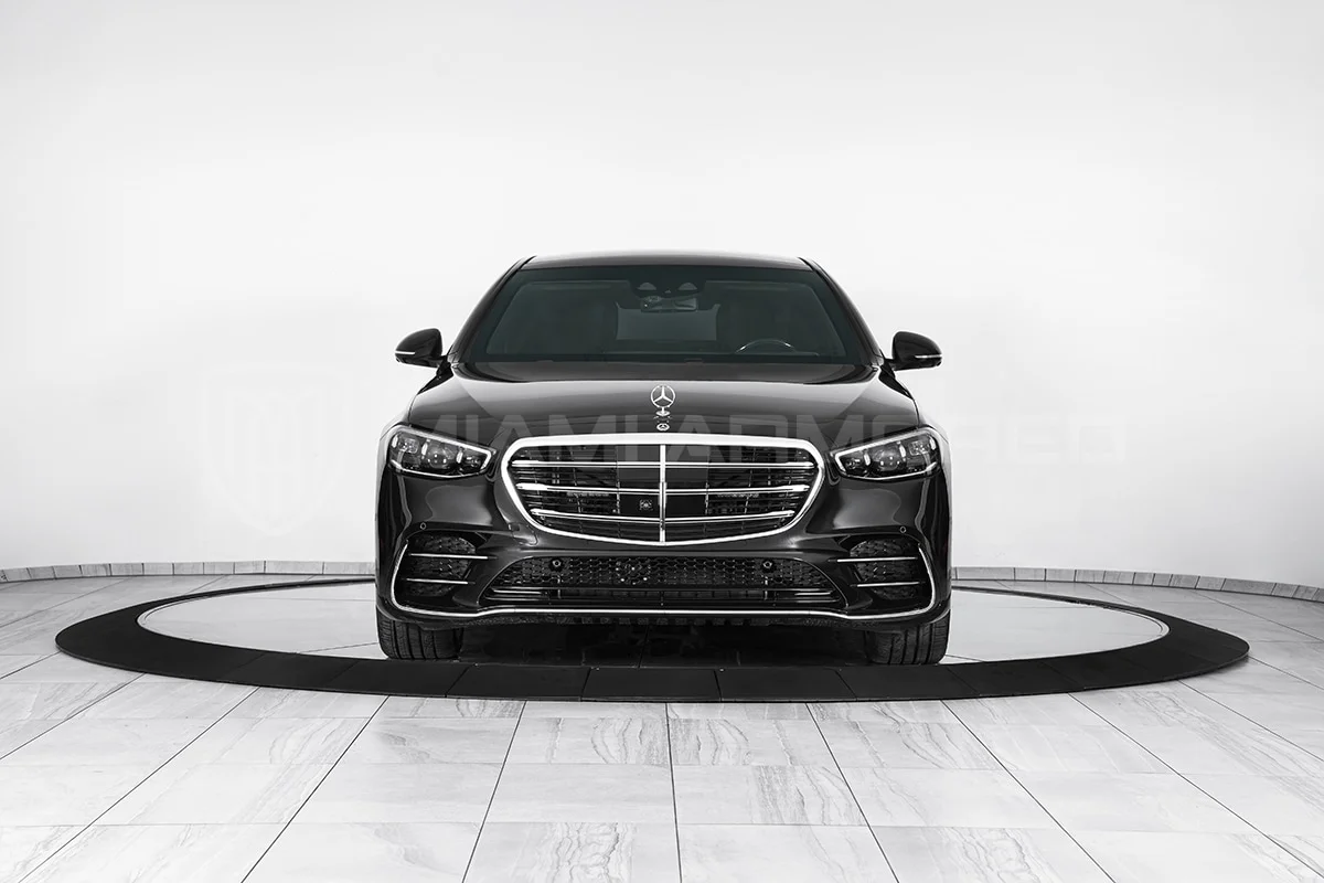 For comprehensive protection, the Miami Armored® S580L is outfitted with top-tier ballistic armor that meets the CEN 1063 BR6 standard, fortifying critical structural points throughout the vehicle. This armor ensures resilience against 7.62x51mm high-power rifle ammunition and can withstand the simultaneous explosion of up to two hand grenades beneath the vehicle. Additional tactical enhancements such as air filtration, night vision, engine bay fire suppression, strobe lights, sirens, and PA systems are available, ensuring this armored luxury car offers unmatched security and safety.
