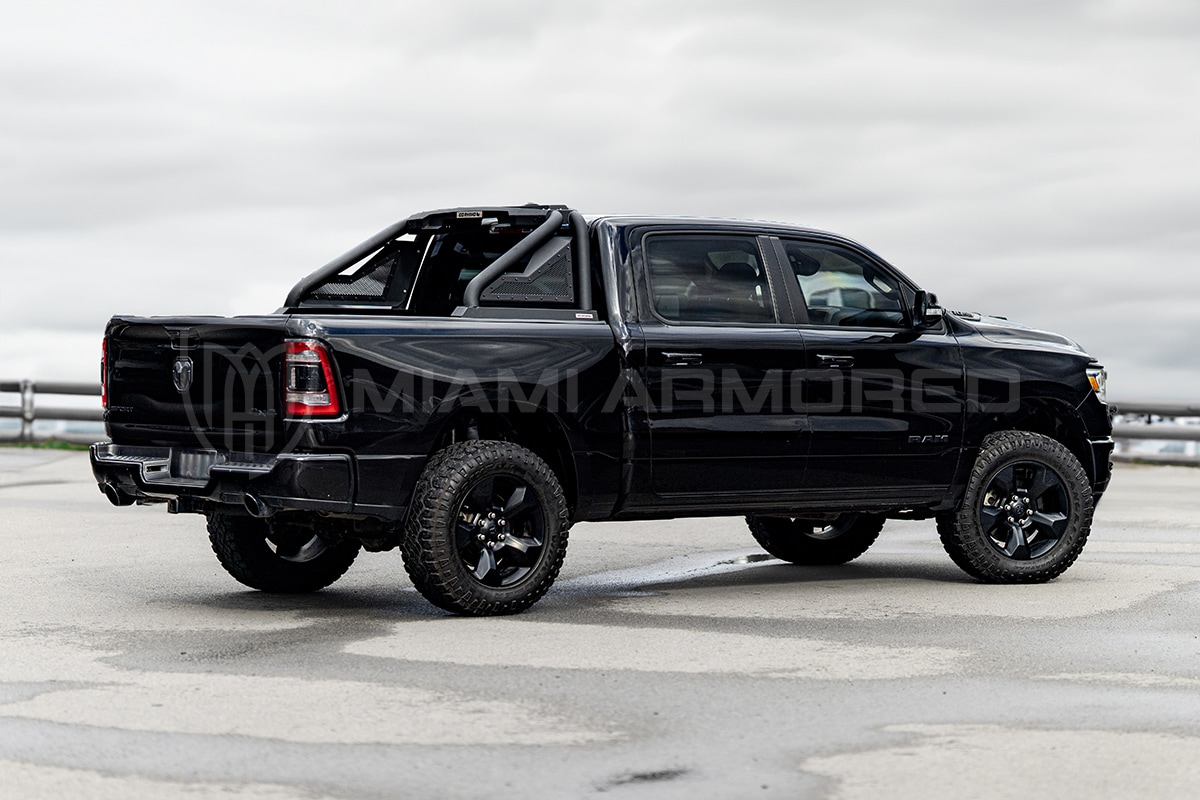 The Miami Armored® RAM 1500 is a versatile, full-size pickup truck designed to transport passengers with comfort, confidence, and uncompromised protection. Offering ballistic protection levels from BR4 to BR6, this platform is engineered to perform across a wide range of challenging environments, whether urban or off-road.